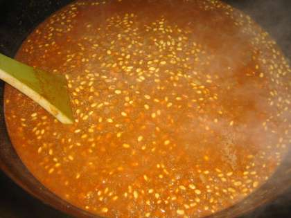 「チリコンカーン」にはたくさんの大豆が入りました。味付けには「ケチャップ・カレー粉・オールスパイス・ガーリックパウダー・塩・こしょう・醤油」が入りとてもスパイシーでした。