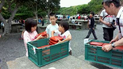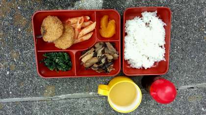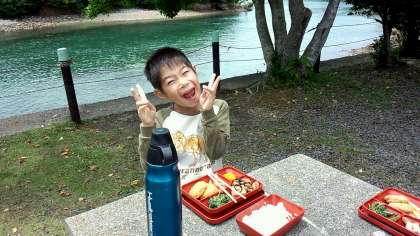 お弁当が届きました。プールでお腹がすいたことでしょう。