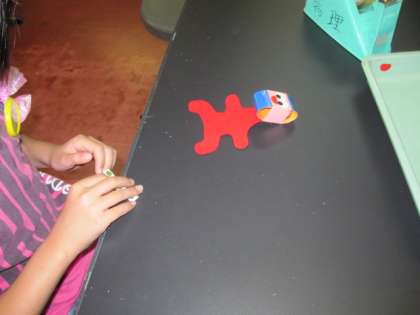 高学年は実験室学習があります。Nさんは日下部先生と一緒に実験室に行き、コロコロ人形を作りました。「簡単やったぁ!」と言っていました。