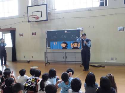 今日は2時間目に警察と地域の方々による
