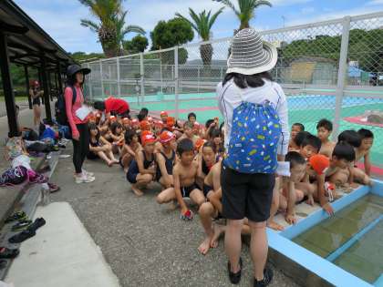 2日目午前中,磯観察後のプールの様子です。(パート1)