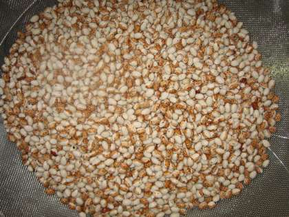 「とら豆」は動物の「とら」のような模様があることから「とら豆」という名がつきました。いんげん豆の仲間で柔らかく煮えやすいのが特徴です。給食では三温糖と醤油で味付けしました。