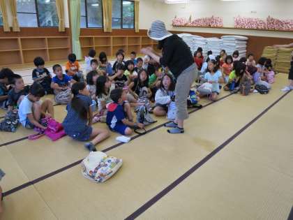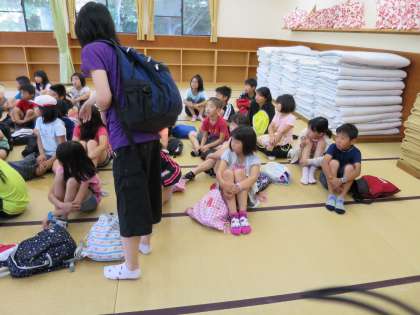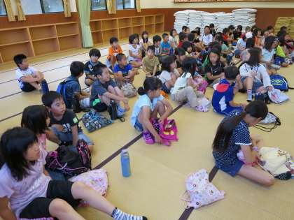3日目朝,退所式に向かう直前です。後ろの棚には,もう大きい荷物はありません。