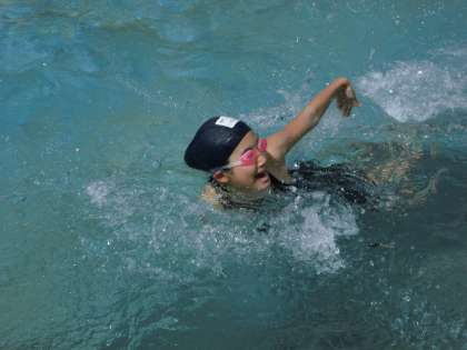 それぞれ得意な泳ぎ方で25メートルを目指しました。