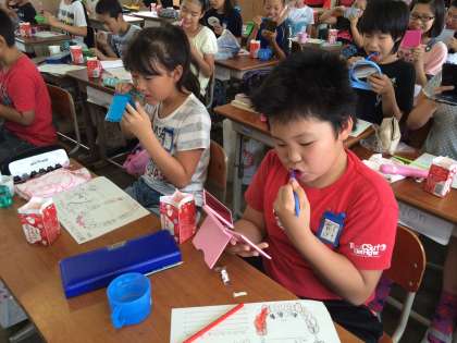 子どもたちは自分の歯を鏡で見て、とてもびっくりしていました。