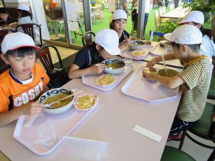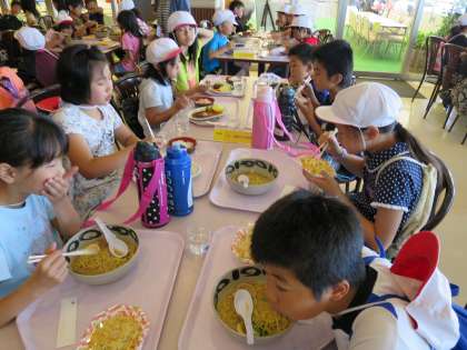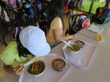 水族館内にあるレストランで食べました。カツカレーやラーメンセットなどから,それぞれが選んで食べました。