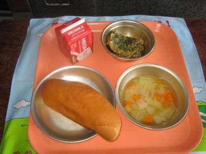 ミルクコッペパン・牛乳・さわらの香草あげ・野菜のスープ煮