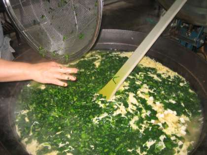 「かきたま汁」は卵の黄色とほうれん草の緑色が鮮やかでした。