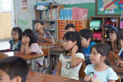 あじさい読書週間の最終日の朝は,図書委員さんが絵本の読み聞かせに