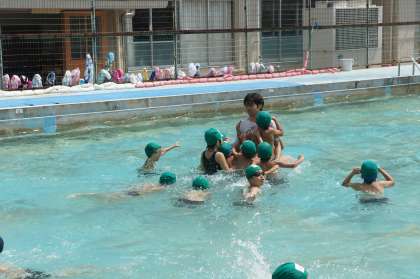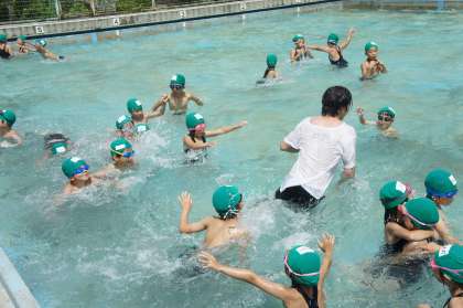 今日のプールの自由時間も吉田先生と遊びたくて