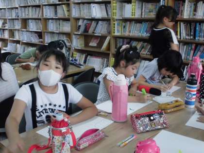 ふりかえりの後は図書館のポスター作りをしました。