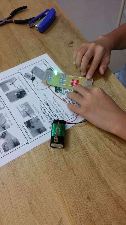 台紙にさらにソケットと電池を付けたら…完成!