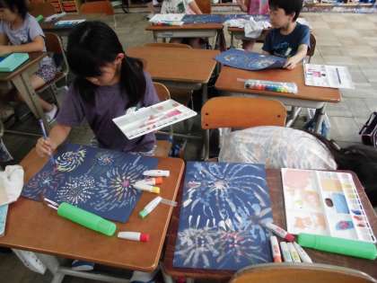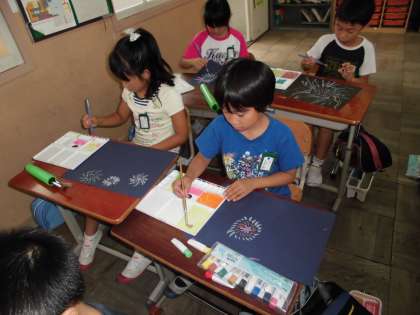 色々な色を作ったり,筆で色々な細さや形の線をかくことで