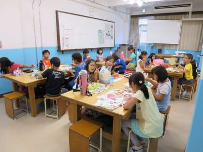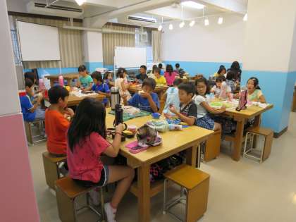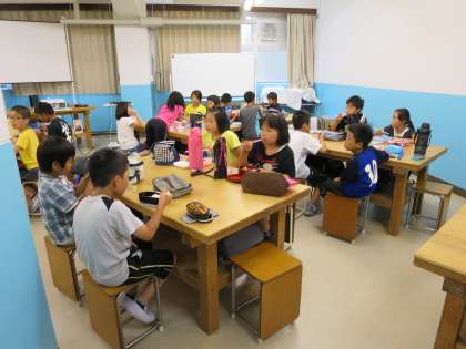 学習が終わり,昼食です。工房学習をした場所で食べました。(パート1)