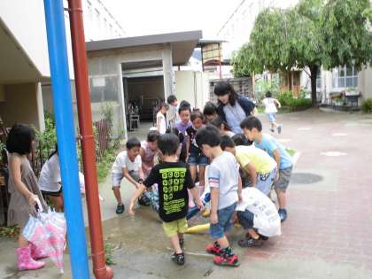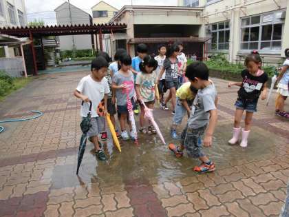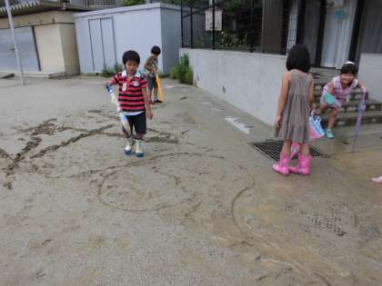 雨上がりの運動場やちびっこ広場を