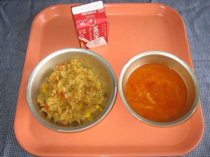 カレーピラフ・牛乳・トマトスープ(台風献立)