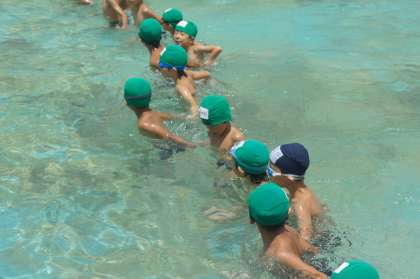 夏休みも学校のプールに来て,たくさん泳いでくださいね。