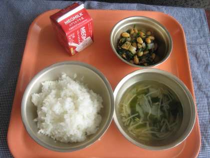 ごはん・牛乳・肉みそいため・わかめスープ