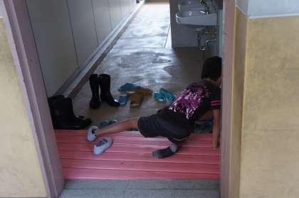 Mさんがスリッパを並べていました。
