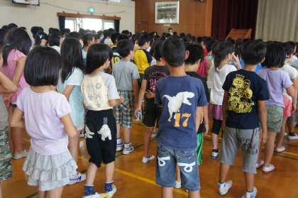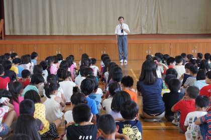校長先生の話を聞き,4月からの学習や生活を振り返りました。