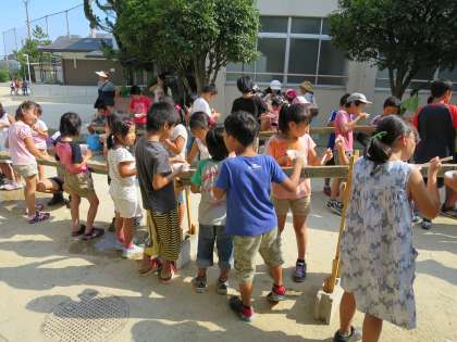 3時のおやつタイムは,「そうめん流し」です。冷たくて,おいしいです。
