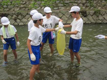 上から見ていただけではわからない、丸太や自転車の一部など様々なゴミを拾いました。