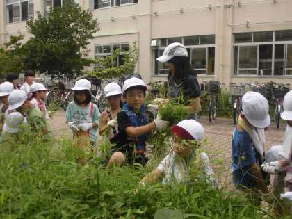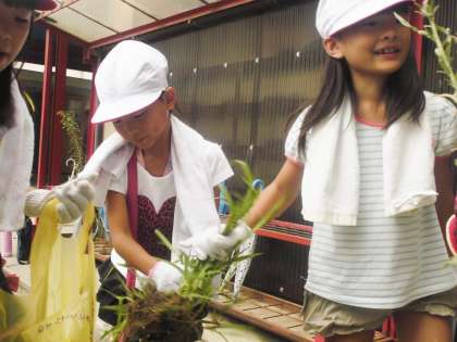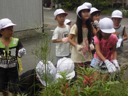 一年生は花壇周りの雑草ぬきをしました。