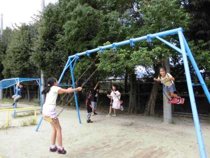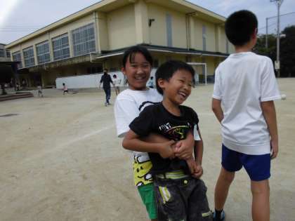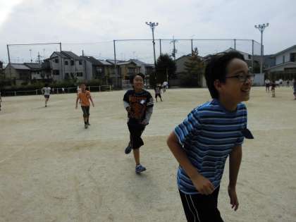 たくさんの班が遊んでいた運動場では