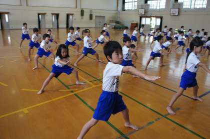 今日の体育は,ロックソーランの時の入場の練習をしました。