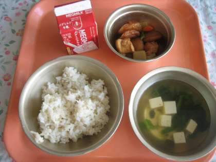 麦ごはん・牛乳・平天とこんにゃくの煮つけ・すまし汁