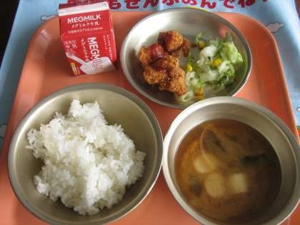 ごはん・牛乳・チキンカツ・ソテー・みそ汁