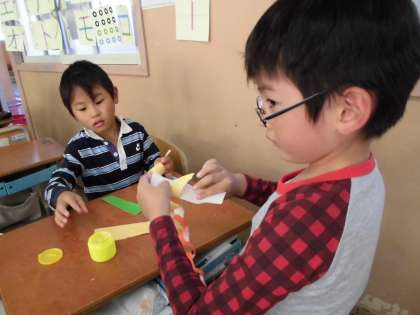 写真は飾り係さんとお誕生日係さんです。