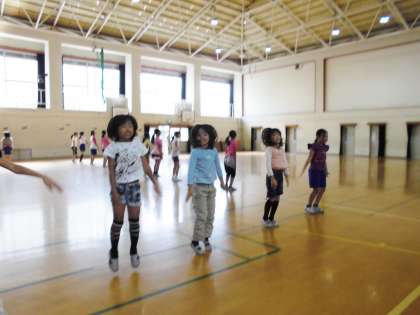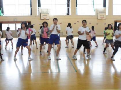 昼休みに体育館で練習をしました。