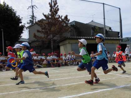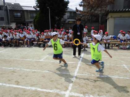 低学年の3色対抗リレーです。