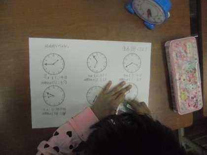 今の時刻はきちんと読むことができます。「あと、○時間たったら」や「○時間前」が何時になるか考えました。
