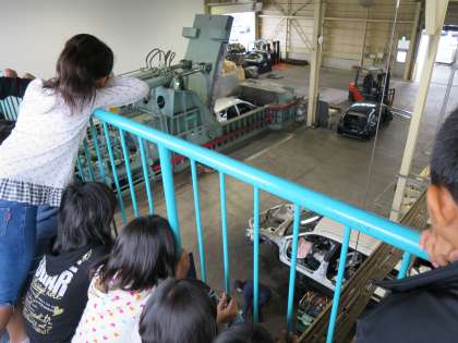 部品をはずしたり,1台ずつ小さな鉄の塊にするところを見せていただきました。