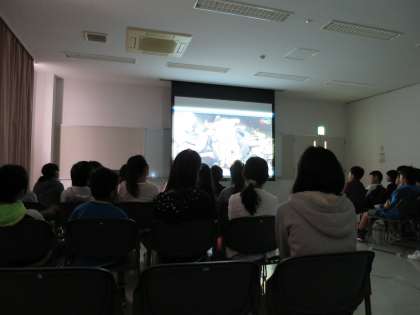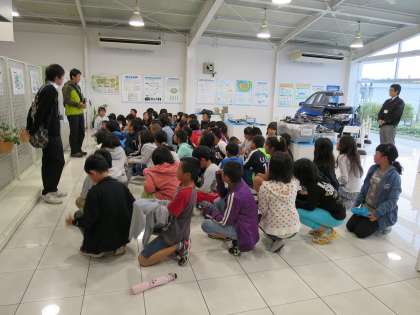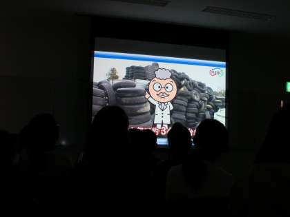 全体で話を聞き,リデュース,リユース,リサイクルの説明ビデオを見たり,見学したりしました。