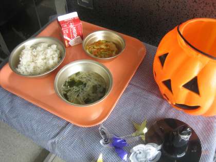 麦ごはん・牛乳・鶏肉とキャベツのみそ炒め・わかめスープ