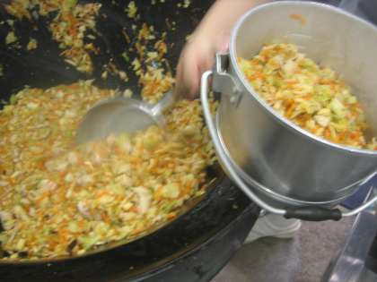「鶏肉とキャベツのみそ炒め」はごま油としょうがで炒めた鶏肉と人参・しいたけ・たけのこ・キャベツを炒め、赤みそ・砂糖・料理酒・しょう油・コチジャンで味つけしました。みその風味とピリッとした味つけが鶏肉や野菜を美味しくしました。