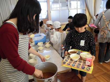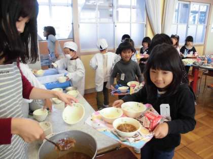 一緒に給食が食べられることです!