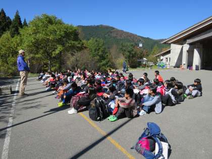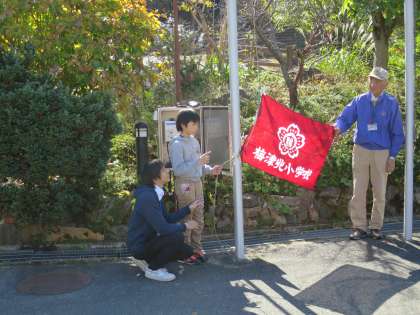 校歌を歌いながら校旗を揚げました。その後,代表の児童がしっかりと「ちかいの言葉」を言うことができました。