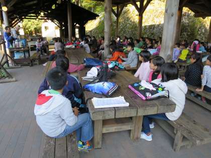 今度は,山の家の方に「鶏すき焼き風煮」の作り方を教えていただきました。