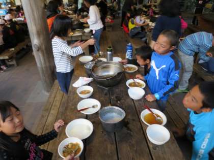 1日目,野外炊事 食べるパート2
