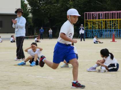 徒競走Iさん。名前を呼ばれると大きな声ではっきりと返事ができました。