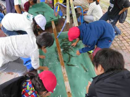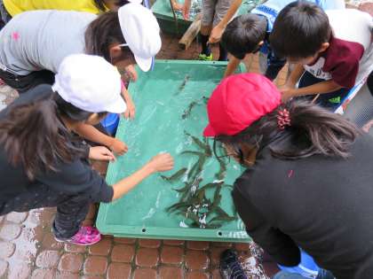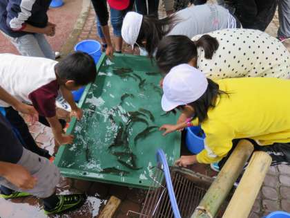 炊飯場に着いて,最初にやったのが魚つかみです。動きが速く,なかなか捕まえられません。
