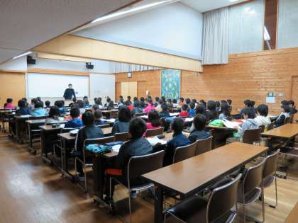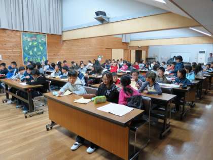 その後,天体観測の予定でしたが,天気がよくなかったので,所員の方にお話を聞き,秋の星のDVDを見ました。所員の方が出されたクイズ(星や星座の名前)に答えられる子どもたちがいることに驚き,うれしく思いました。