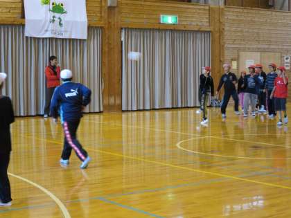 リレーを2つやった後は,ドッチボールです。広いプレーホールの中を走り回りました。