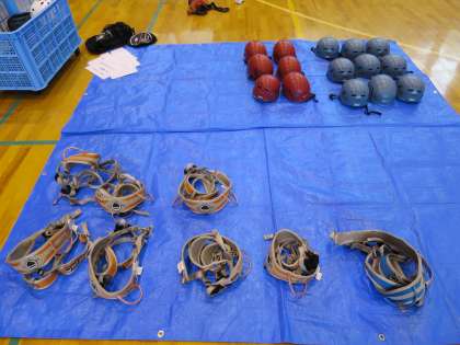 リードクライミングで付ける装具と,登る壁です。