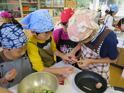 チーズをベーコンで巻き,ピーマンにつめてつまようじで止めました。