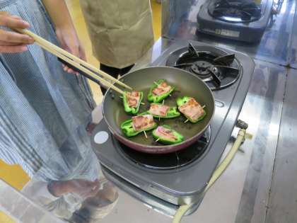 ピーマンは,両面をしっかりと焼きました。